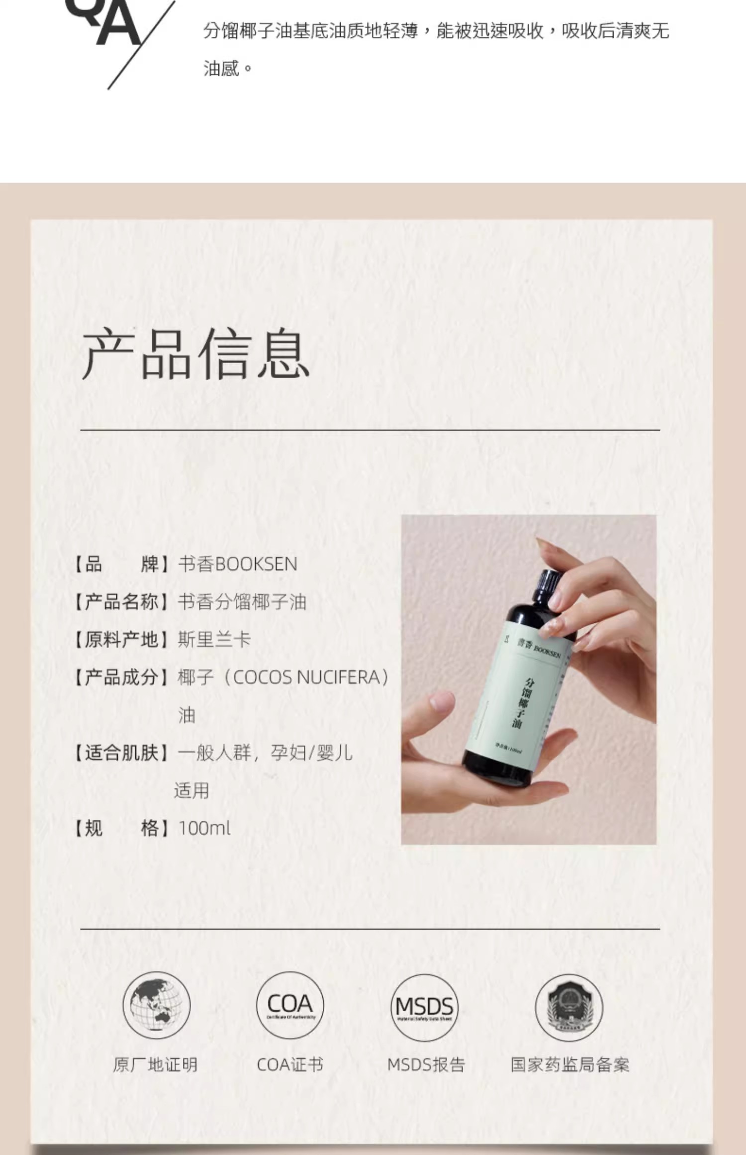 | 颜色分类 | 分馏椰子油 100ml |