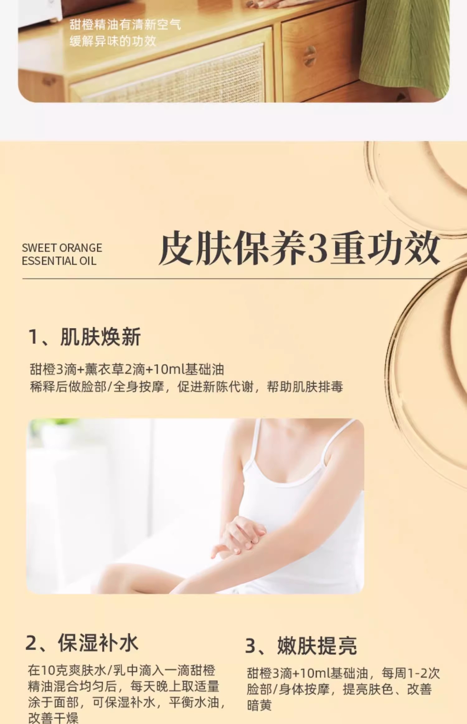 甜橙精油芳疗级面部护肤补水保湿按摩单方精油橘子精油柑橘香薰