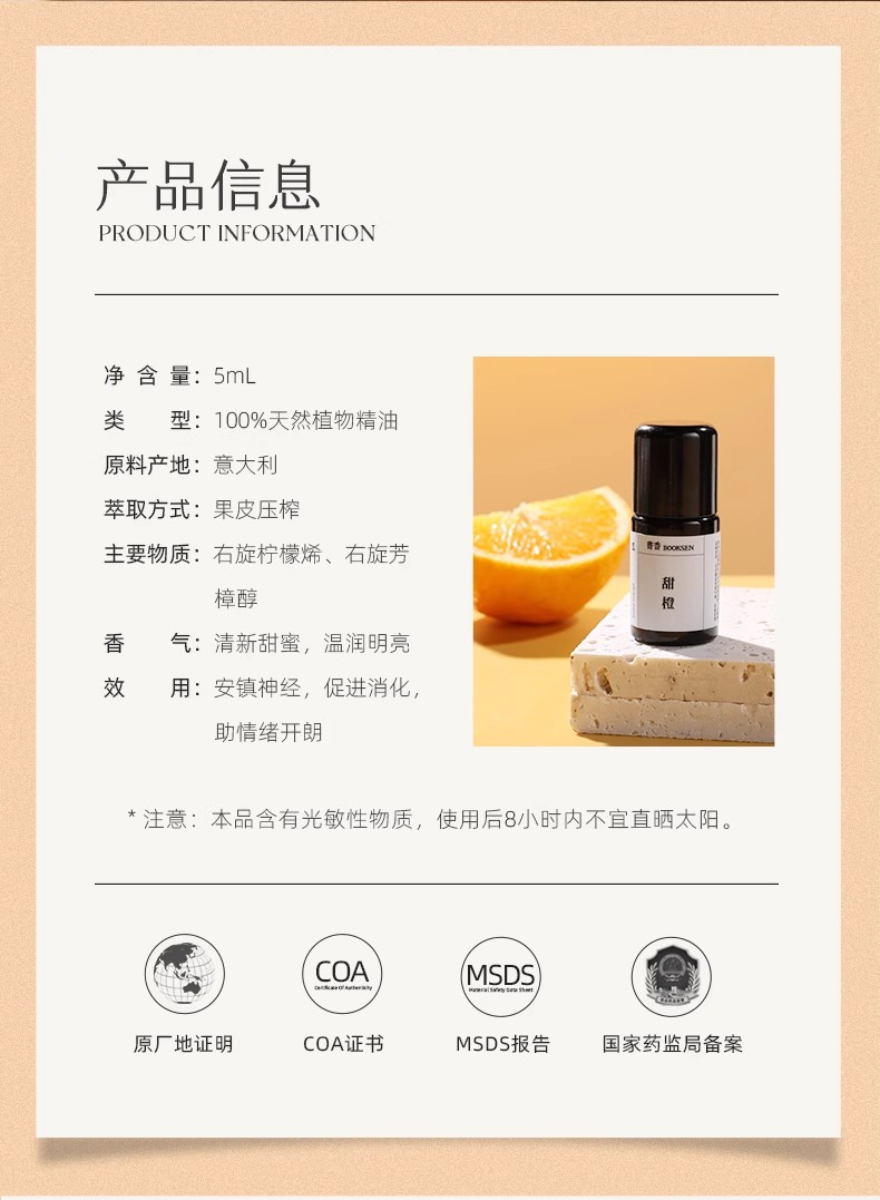 参数信息 品牌 书香(美妆) 型号 甜橙 功效 舒缓精神 精油分类 单方精油 产地 中国 香味 甜橙 5ml 图文详情